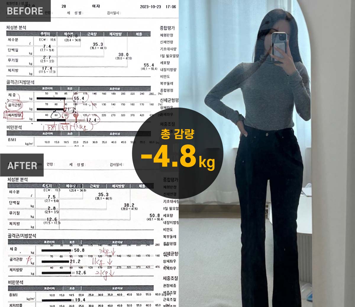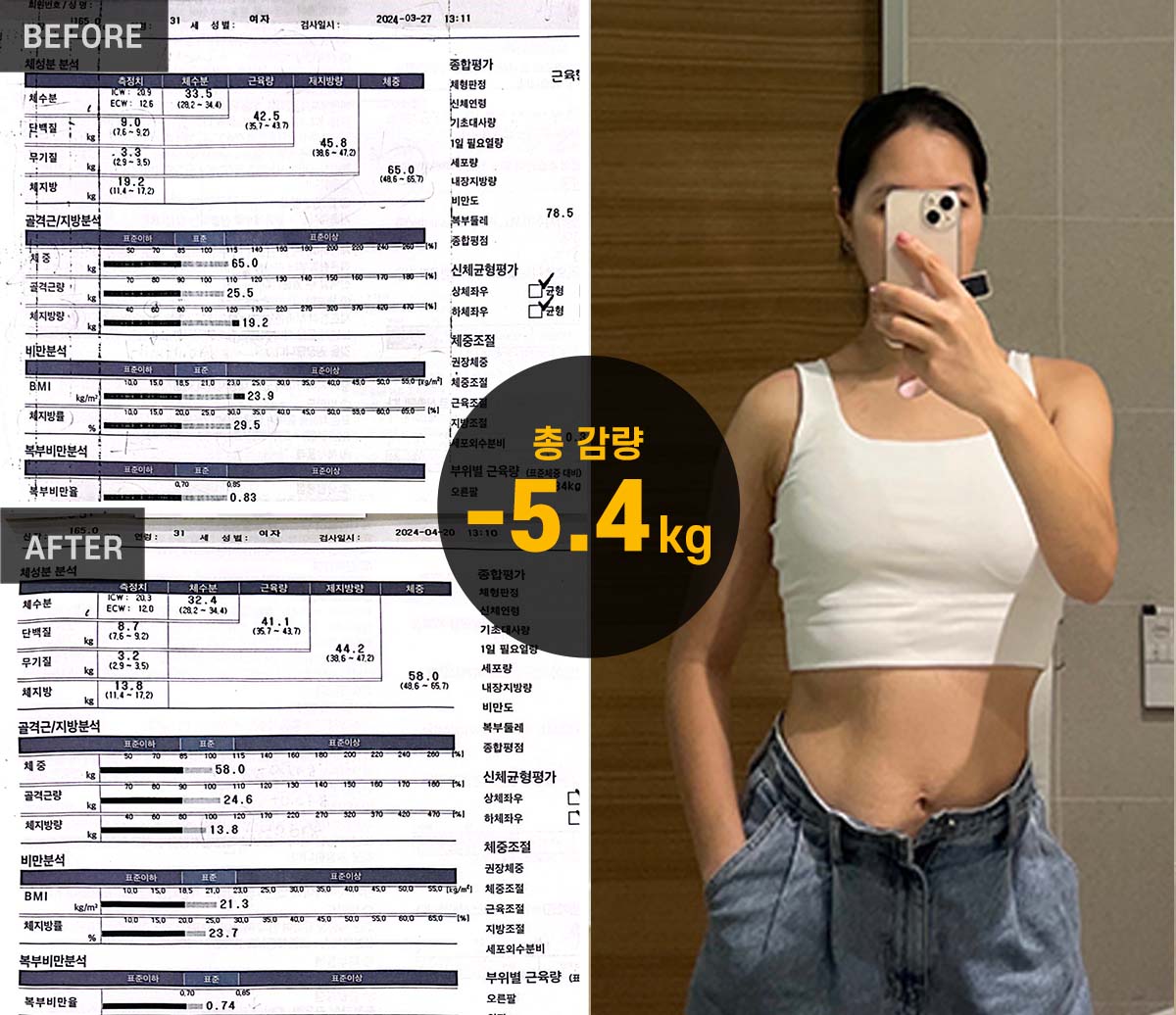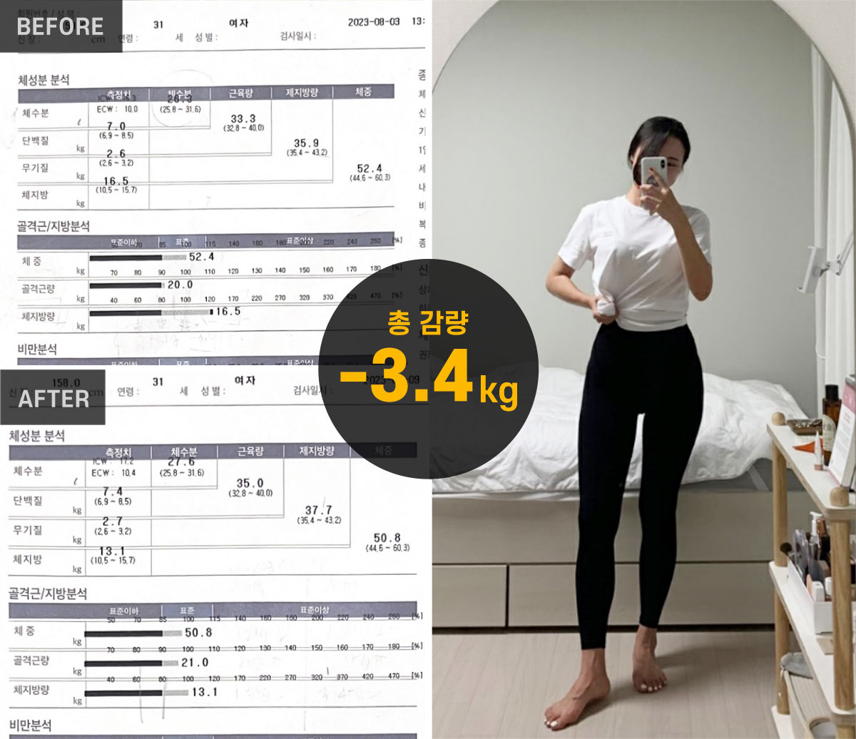 큰 맘 먹고 관리한 보람을 느낍니다. 하루 하루 슬림 해지는 제 자신이 느껴지고, 15일만에 3kg 가 빠지는걸 보고 기분이 정말 날아 갈 것 같았습니다!